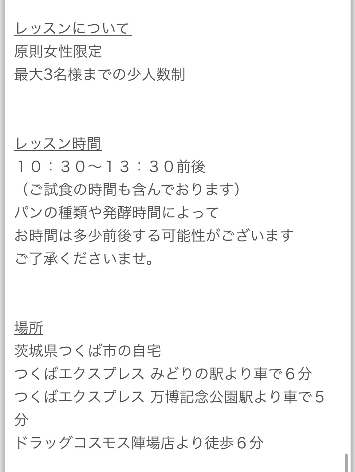 (自宅レッスンのため詳しい住所はお申込み後お伝えします)